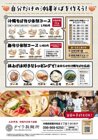 ホテルすぐ近くにある”タイラ製麺所”さんが2026年1月23日に沖縄そば作り体験ができるお店をOPENしております。
